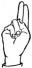На ћирилици написано АНДРИЈА МРЂА састоји се из 11 слова [?]. Исписано ћириличном једноручном азбуком за глувонеме: